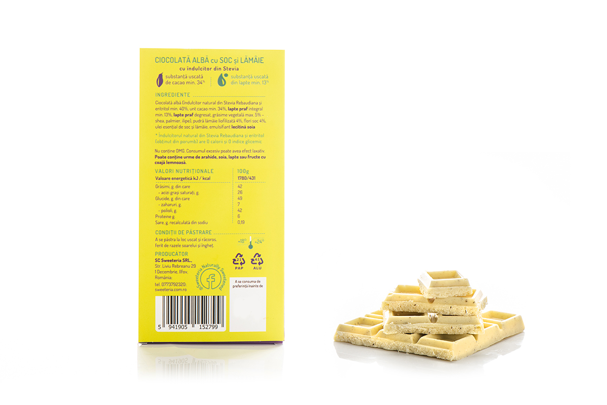 Ciocolata alba cu soc si lamaie – cu indulcitor natural NOU!